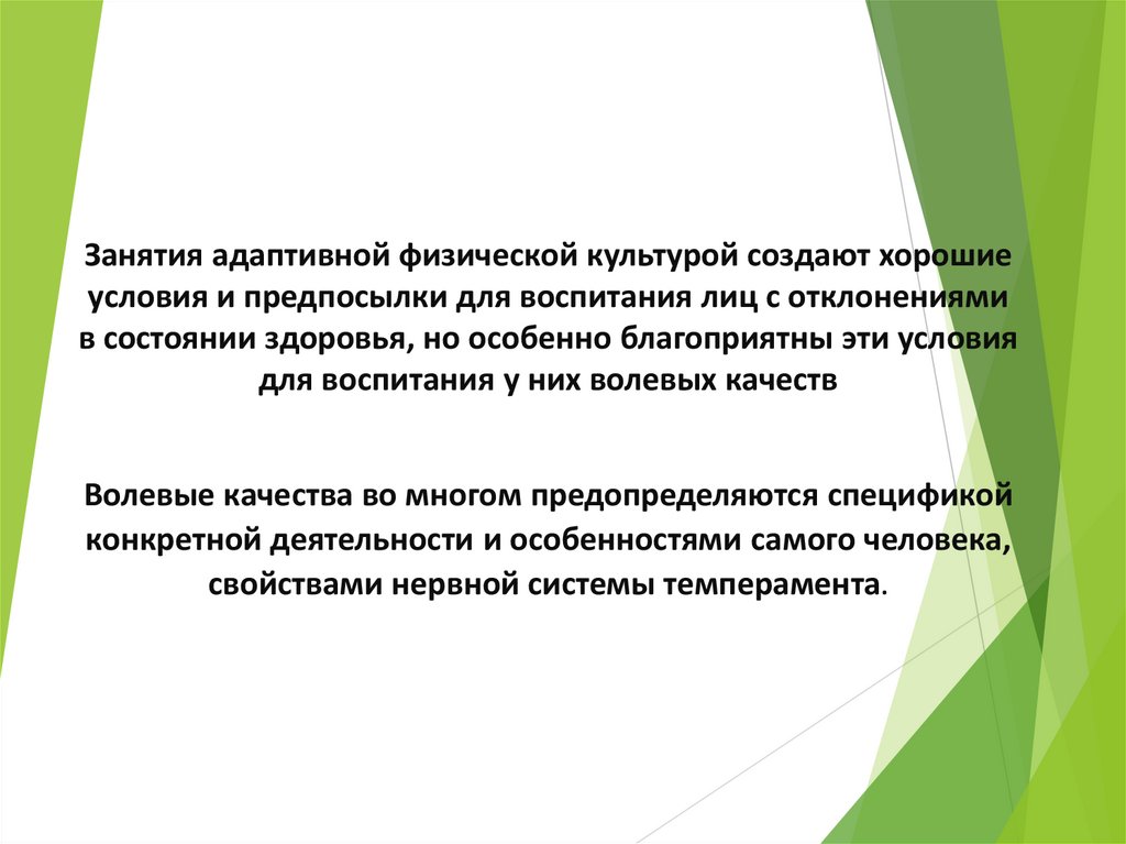 Занятия адаптивной физической культурой создают хорошиеусловия и предпосылки для воспитания лиц с отклонениями