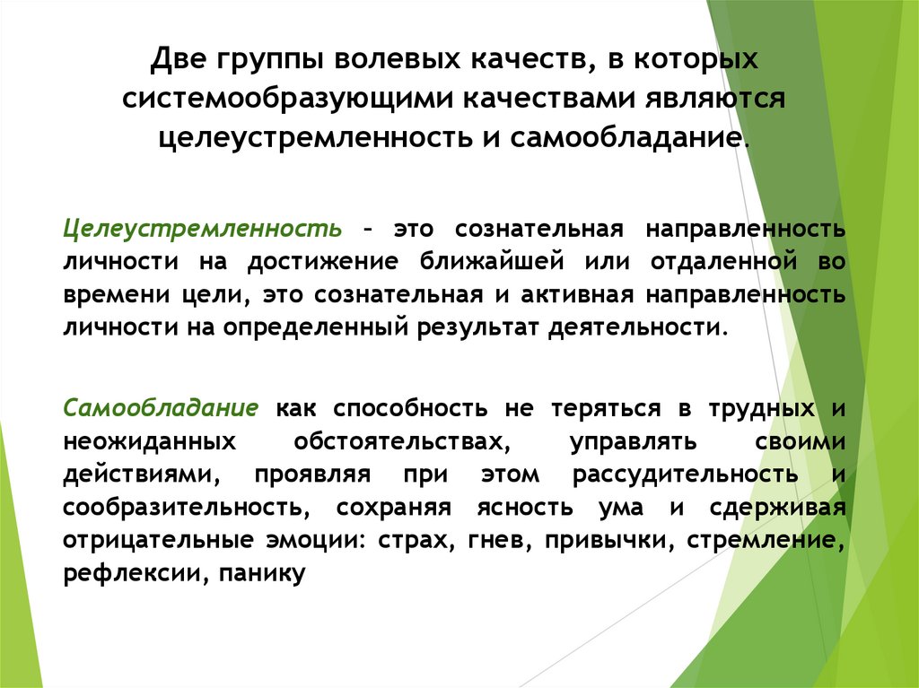 целеустремленность и самообладание.