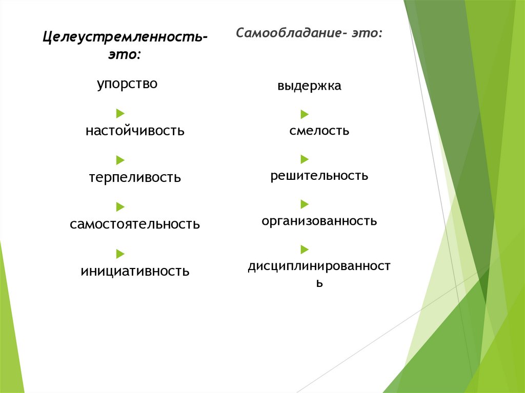 Целеустремленностьэто:Самообладание- это: