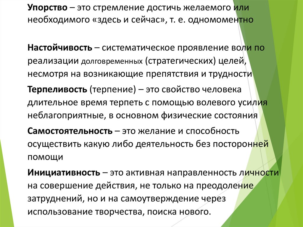 Упорство – это стремление достичь желаемого илинеобходимого «здесь и сейчас», т. е. одномоментно