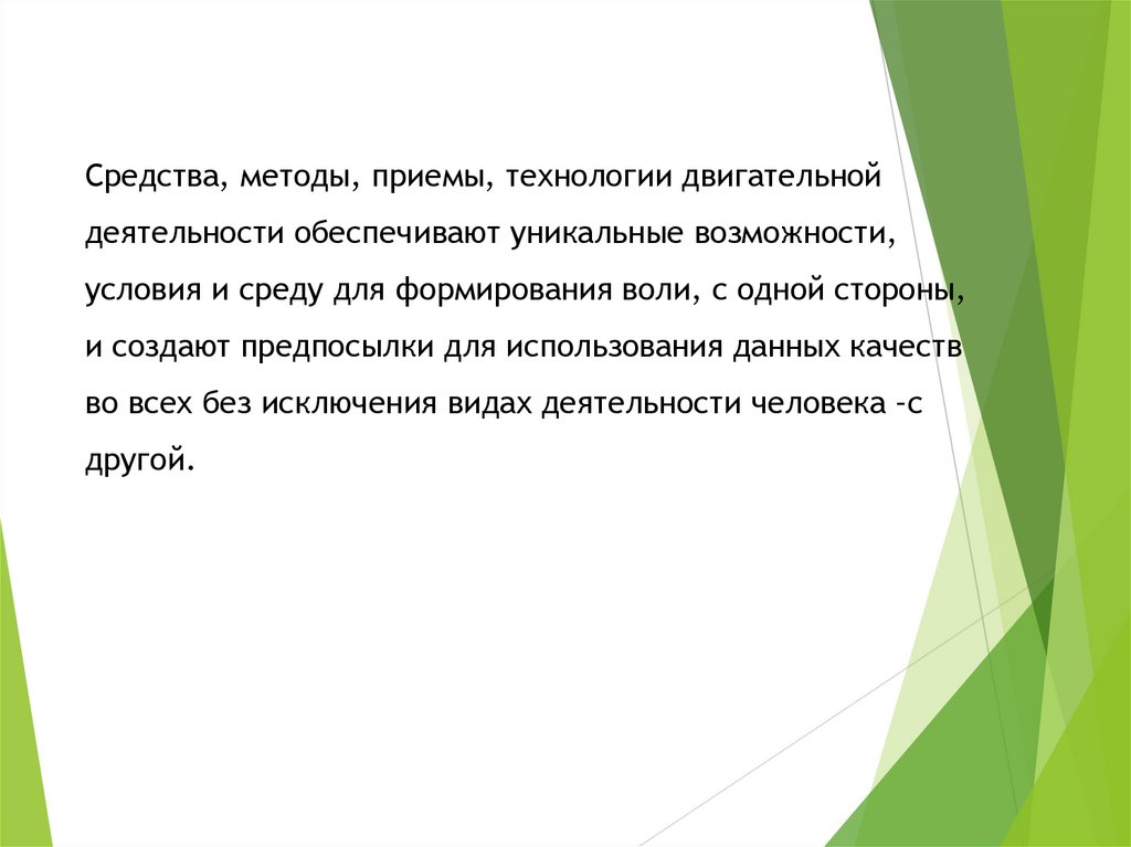 Средства, методы, приемы, технологии двигательнойдеятельности обеспечивают уникальные возможности,