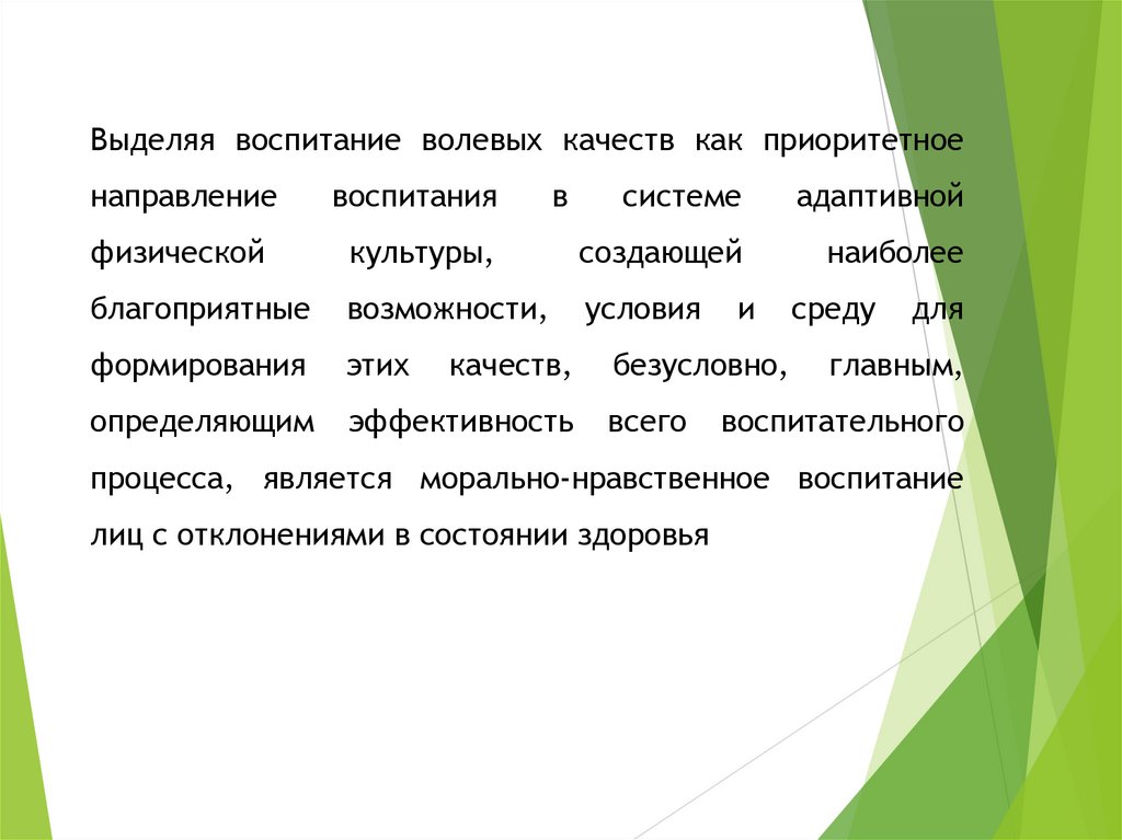 Важнейшее направление воспитания личности вадаптивной физической культуре - воспитание