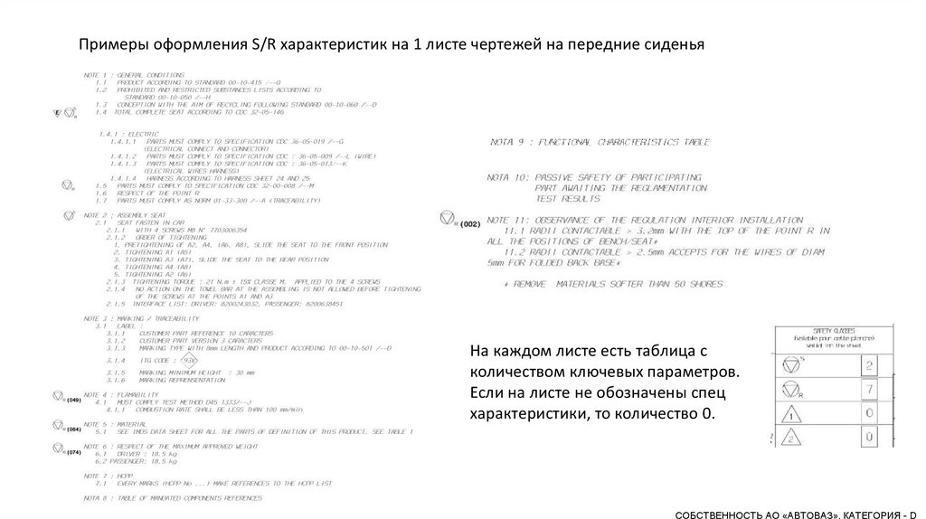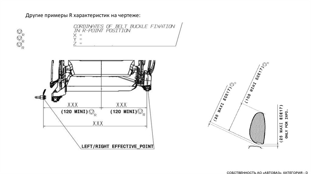 Другие примеры R характеристик на чертеже:СОБСТВЕННОСТЬ АО «АВТОВАЗ», КАТЕГОРИЯ - D