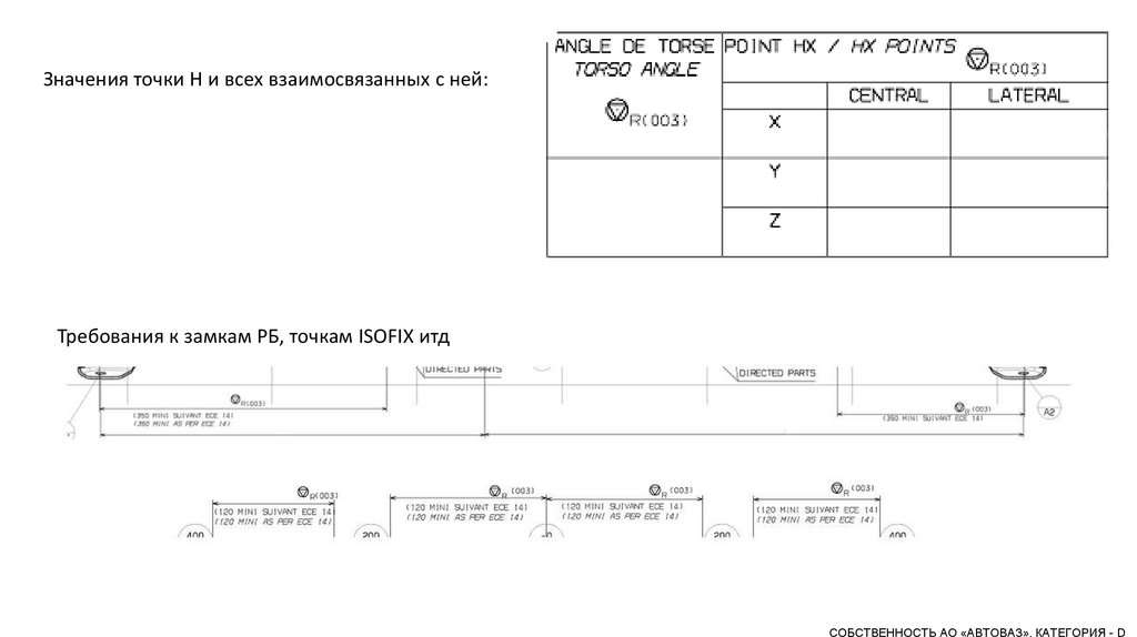 Значения точки Н и всех взаимосвязанных с ней:Требования к замкам РБ, точкам ISOFIX итд