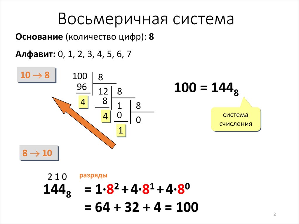Восьмеричная системаОснование (количество цифр): 8