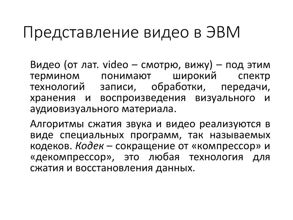 Представление видео в ЭВМВидео (от лат. video – смотрю, вижу) – под этим