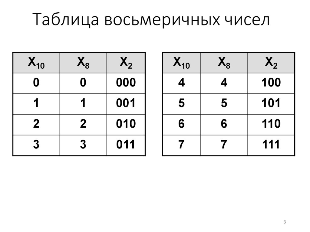 Таблица восьмеричных чиселX10