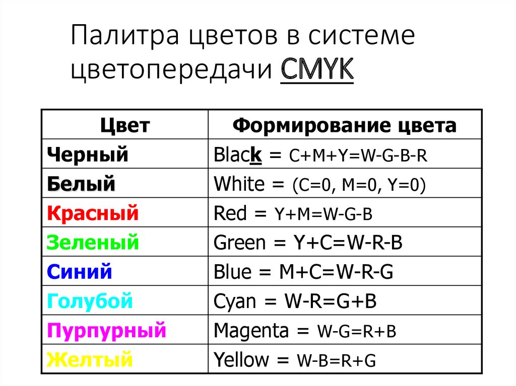 Палитра цветов в системецветопередачи CMYK