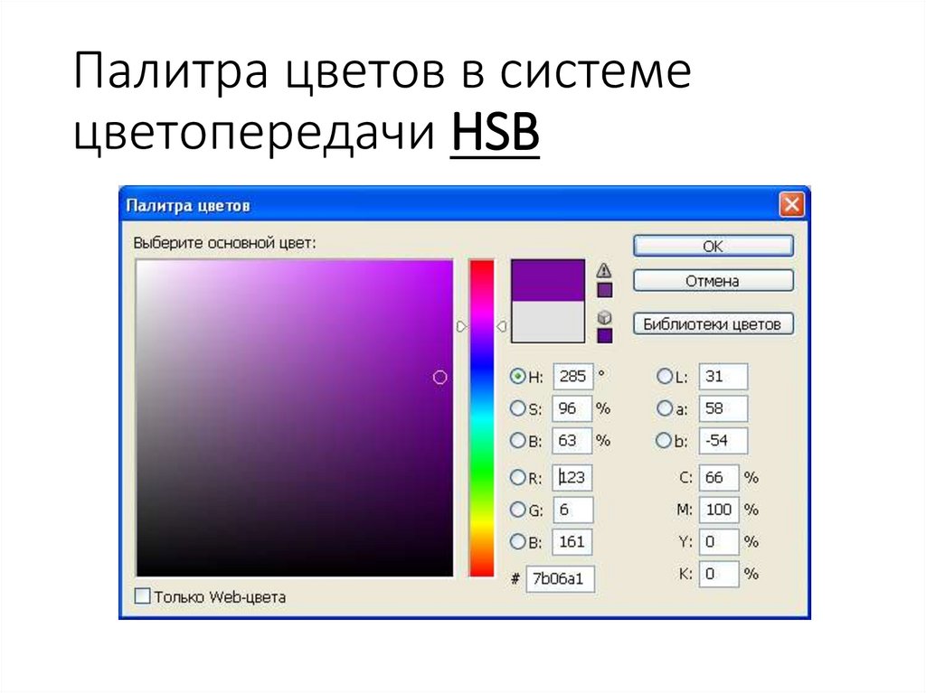 Палитра цветов в системецветопередачи HSB