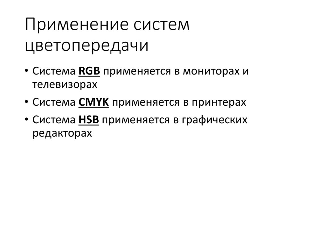 • Система RGB применяется в мониторах и