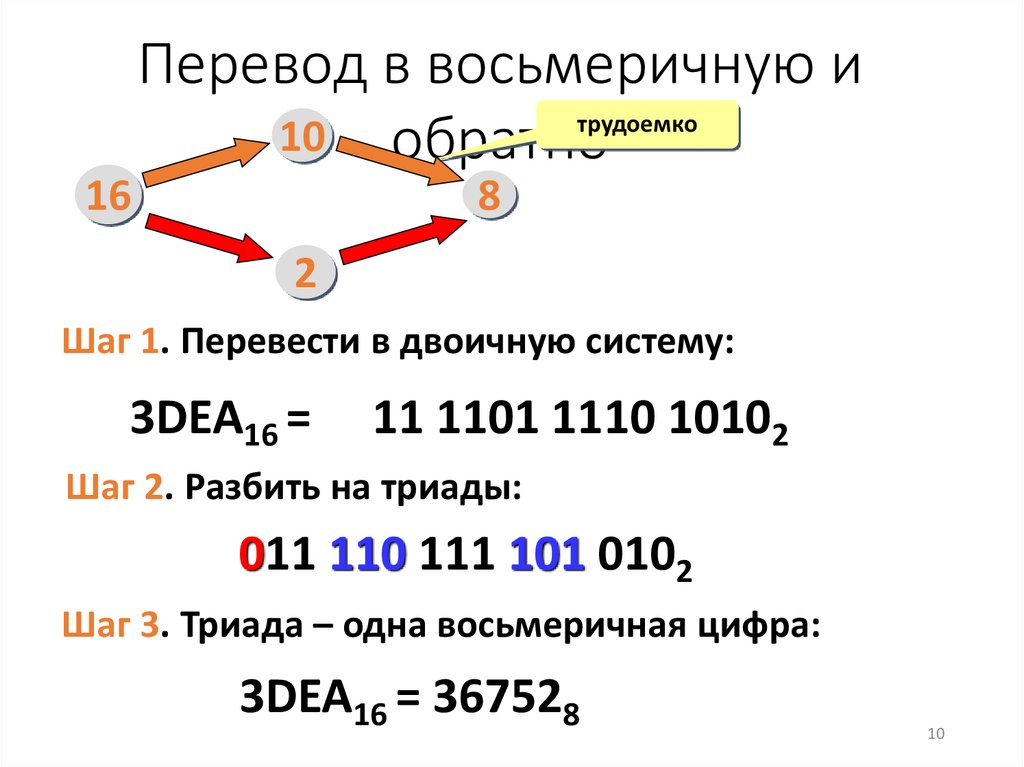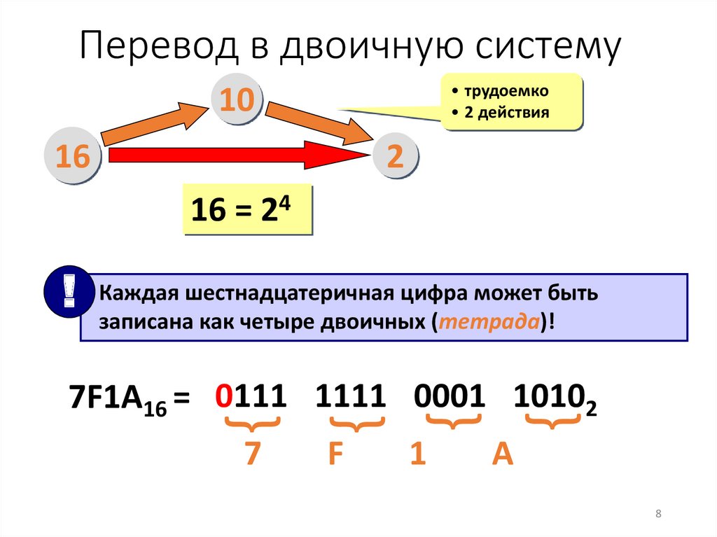Перевод в двоичную и обратно• трудоемко