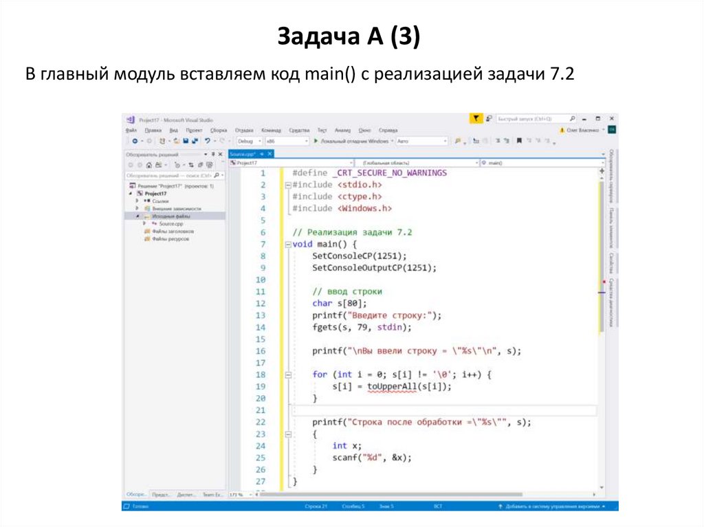 Задача A (3)В главный модуль вставляем код main() с реализацией задачи 7.2