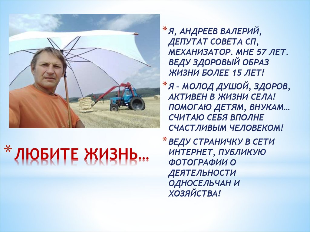* Я, АНДРЕЕВ ВАЛЕРИЙ,ДЕПУТАТ СОВЕТА СП,
