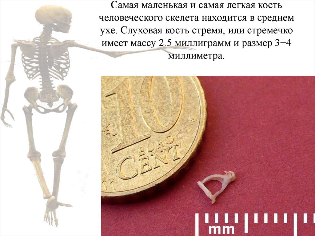 Самая маленькая и самая легкая костьчеловеческого скелета находится в среднем