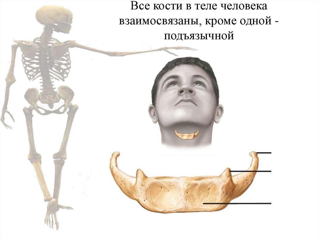 Все кости в теле человекавзаимосвязаны, кроме одной подъязычной