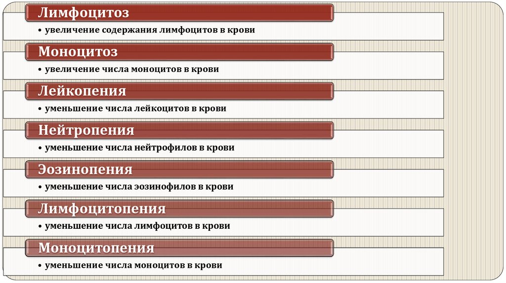Лимфоцитоз• увеличение содержания лимфоцитов в крови