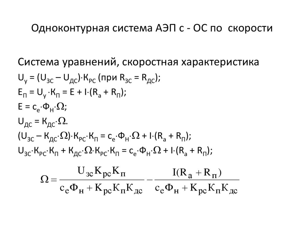 Система АЭП с – ОС по напряжению и + ОС по токуСистема уравнений