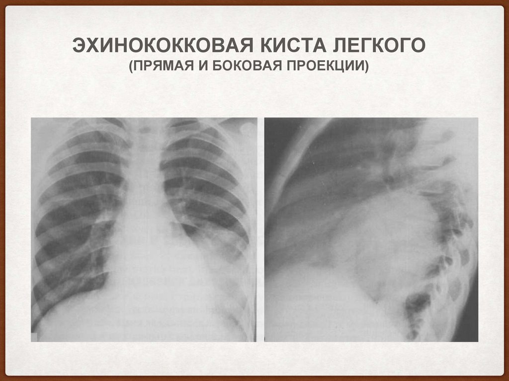ЭХИНОКОККОВАЯ КИСТА ЛЕГКОГО(ПРЯМАЯ И БОКОВАЯ ПРОЕКЦИИ)