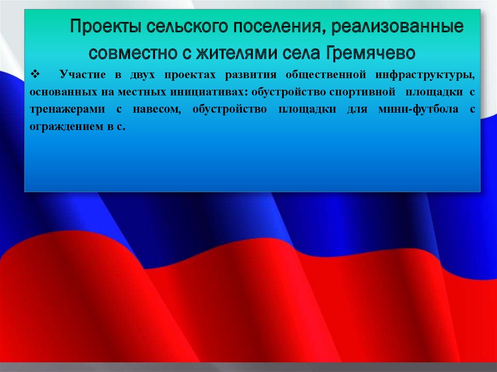 Проекты сельского поселения, реализованныесовместно с жителями села Гремячево