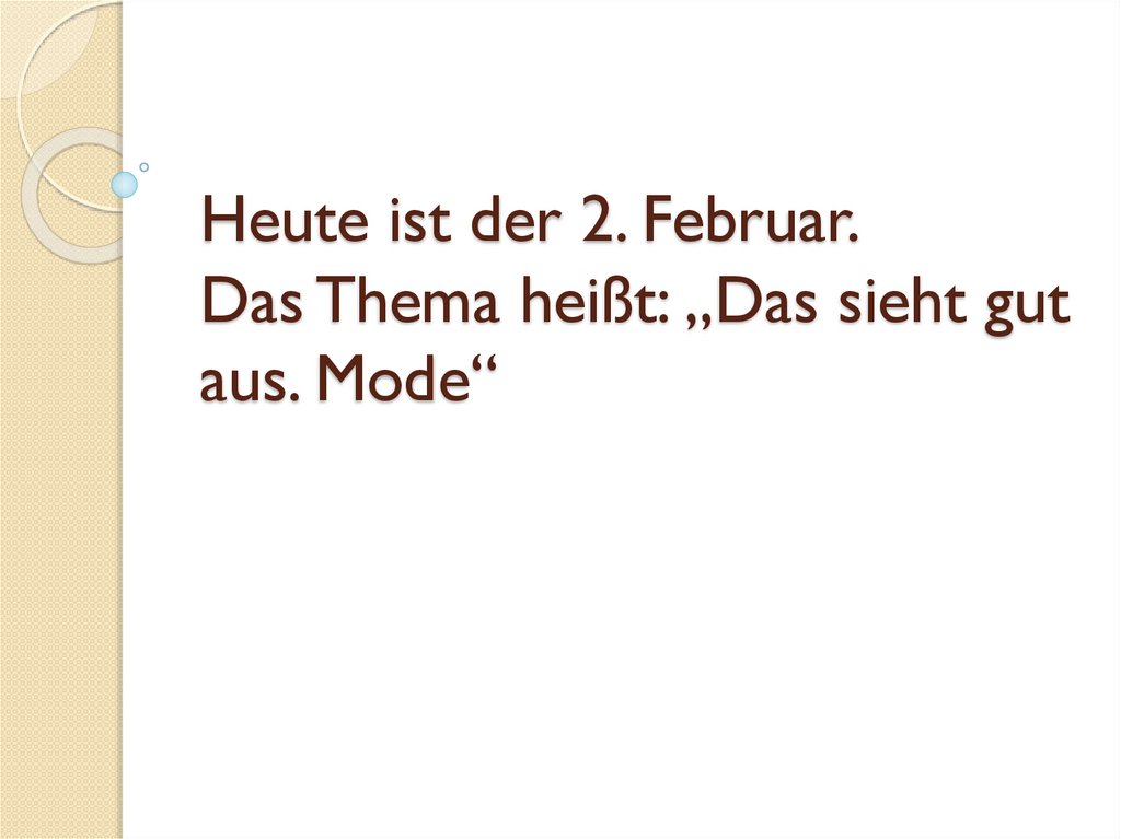 Heute ist der 2. Februar.Das Thema heißt: „Das sieht gut