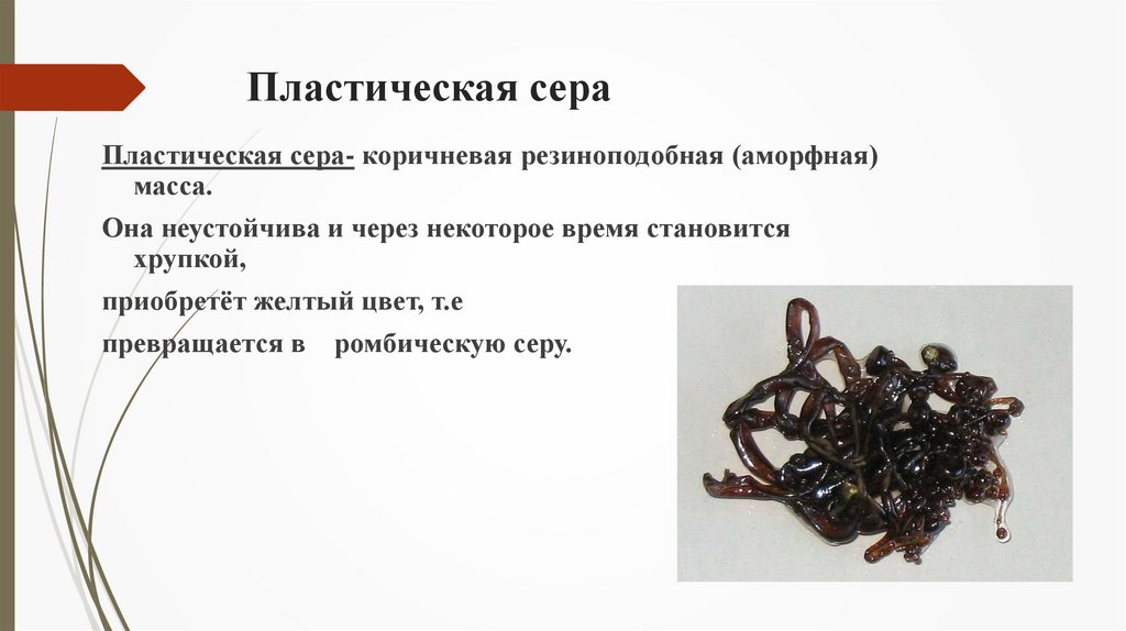 Пластическая сераПластическая сера- коричневая резиноподобная (аморфная)
