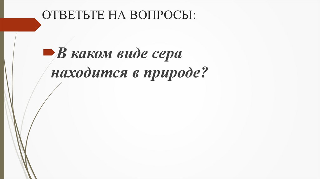 ОТВЕТЬТЕ НА ВОПРОСЫ:В каком виде сера