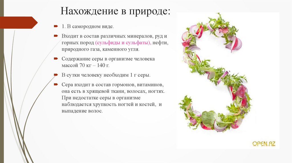 Сера входит в состав гормонов, витаминов,