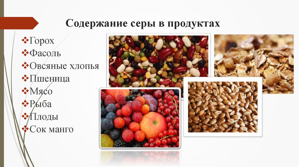 Содержание серы в продуктахГорох
