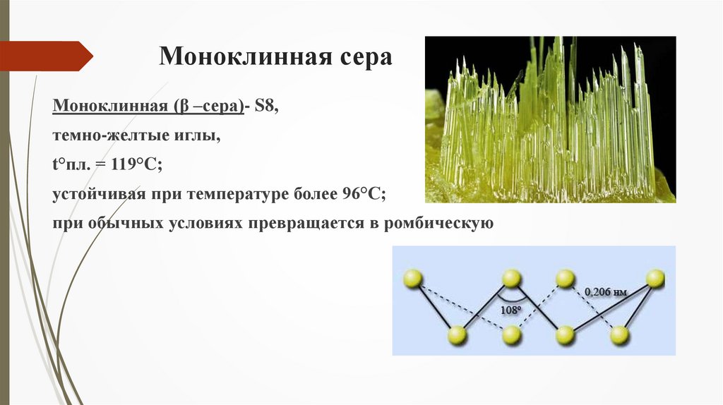 Моноклинная сераМоноклинная (β –сера)- S8,