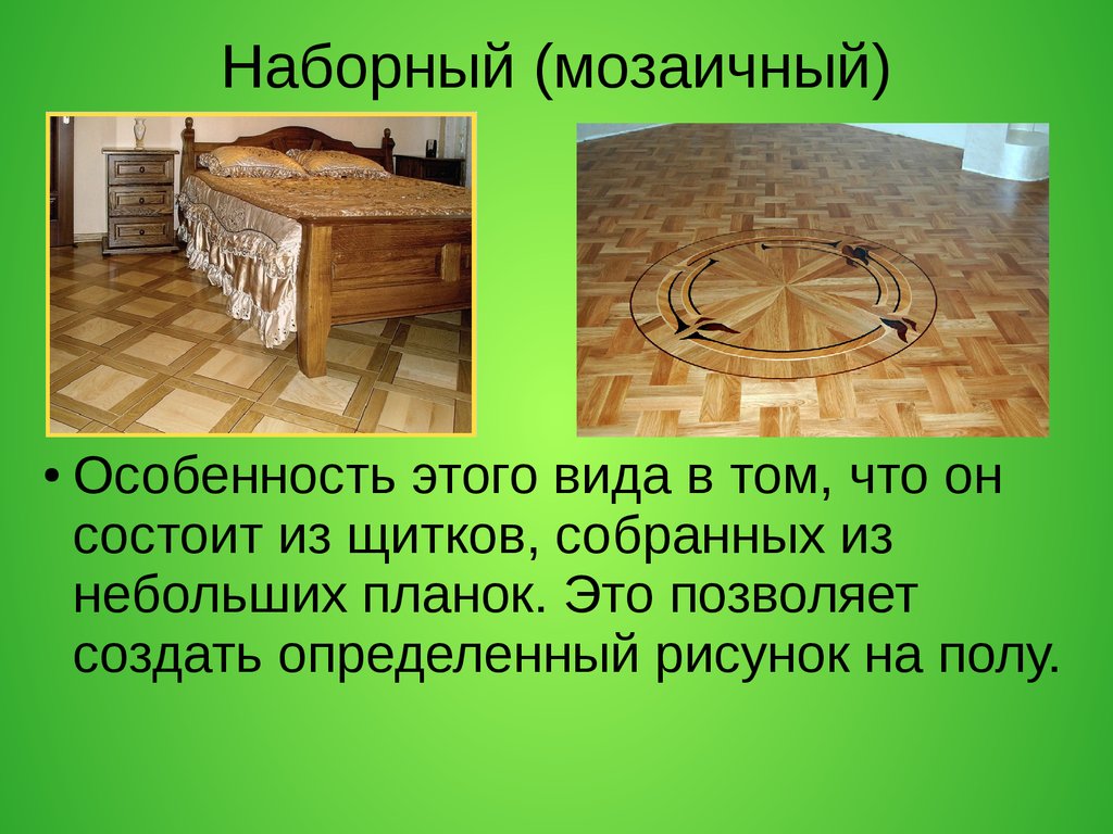 Наборный (мозаичный)Особенность этого вида в том, что он