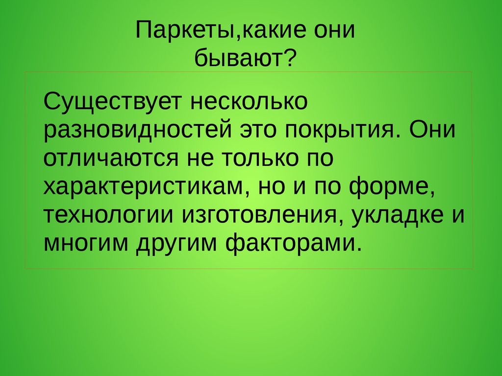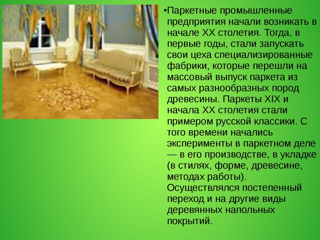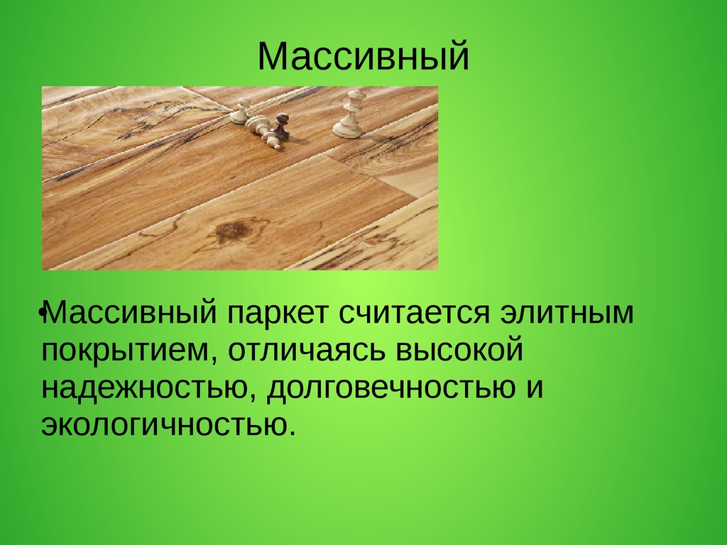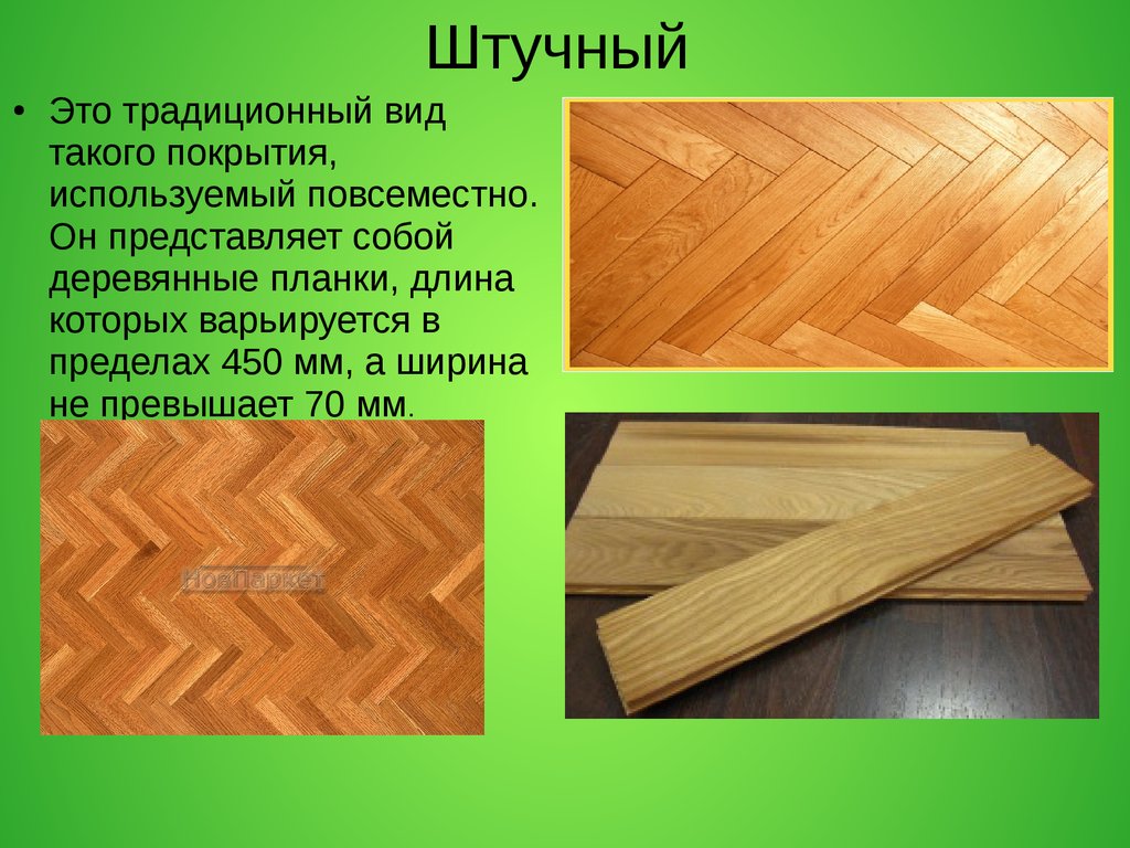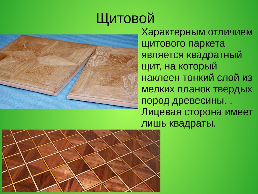 щитового паркета, штучногопаркета («дубовые кирпичи») и массивной паркетной