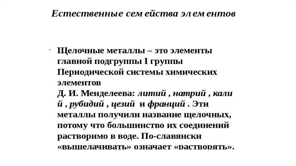 Первоначальные попытки классификации химических элементов. Понятие о группах сходных элементов. Естественные семейства металлов
