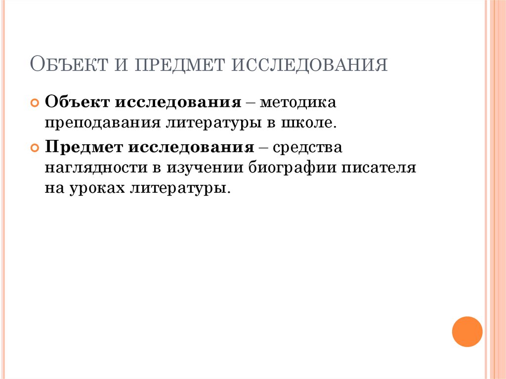 ОБЪЕКТ И ПРЕДМЕТ ИССЛЕДОВАНИЯОбъект исследования – методика