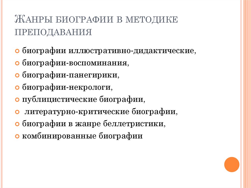 ЖАНРЫ БИОГРАФИИ В МЕТОДИКЕПРЕПОДАВАНИЯ