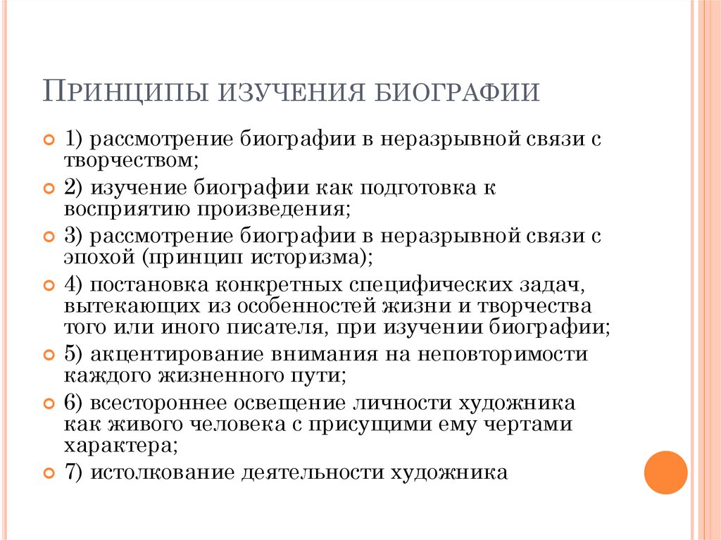 ПРИНЦИПЫ ИЗУЧЕНИЯ БИОГРАФИИ1) рассмотрение биографии в неразрывной связи с