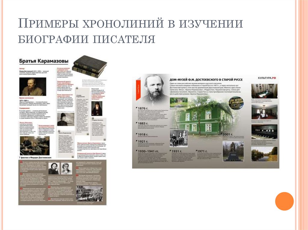 ПРИМЕРЫ ХРОНОЛИНИЙ В ИЗУЧЕНИИБИОГРАФИИ ПИСАТЕЛЯ