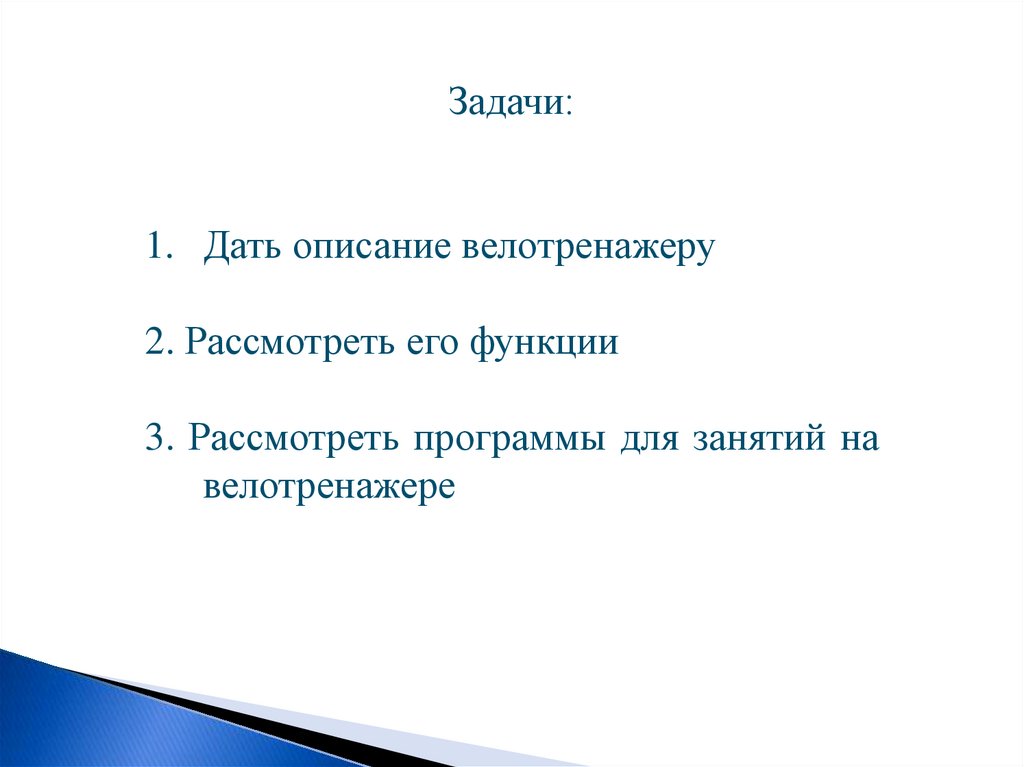 Задачи:1. Дать описание велотренажеру