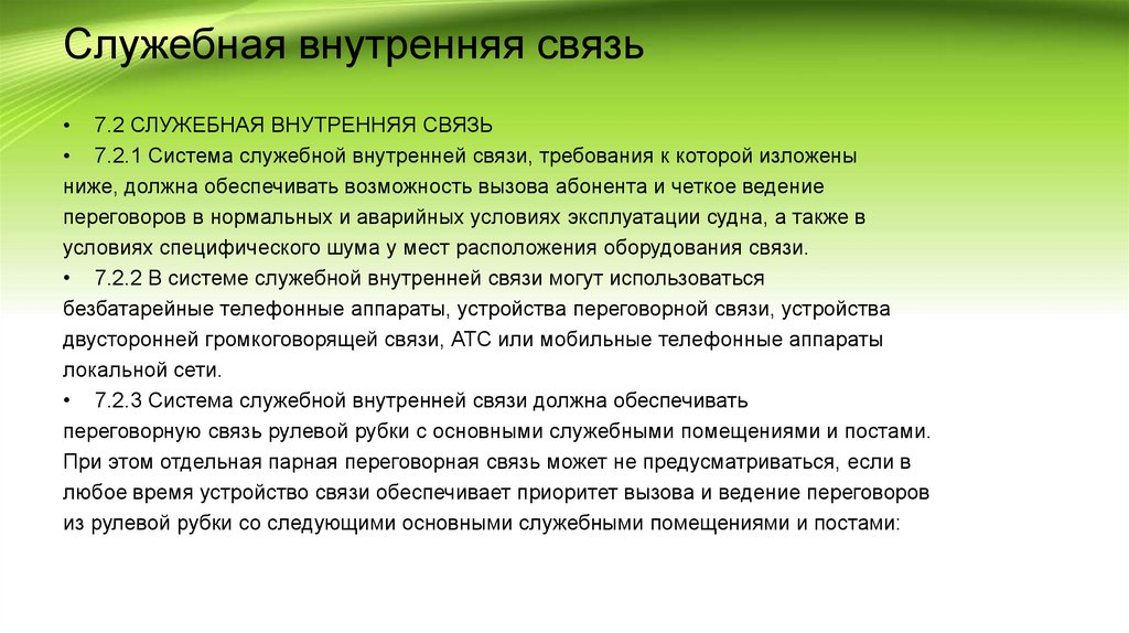 Служебная внутренняя связь• 7.2 СЛУЖЕБНАЯ ВНУТРЕННЯЯ СВЯЗЬ