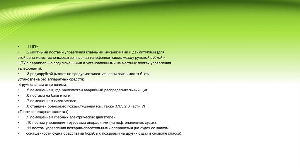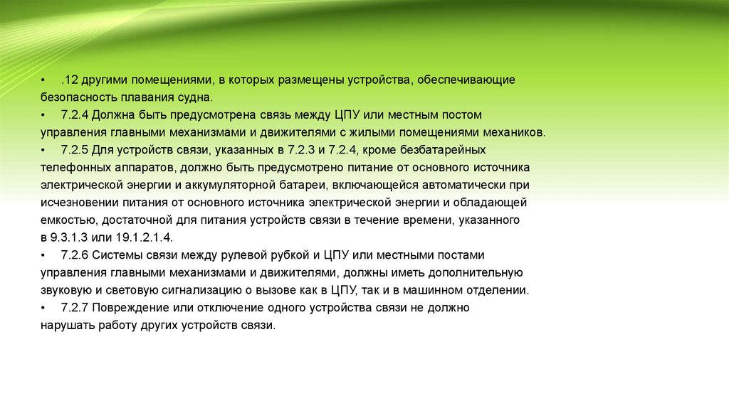 • 7.2.6 Системы связи между рулевой рубкой и ЦПУ или местными постами