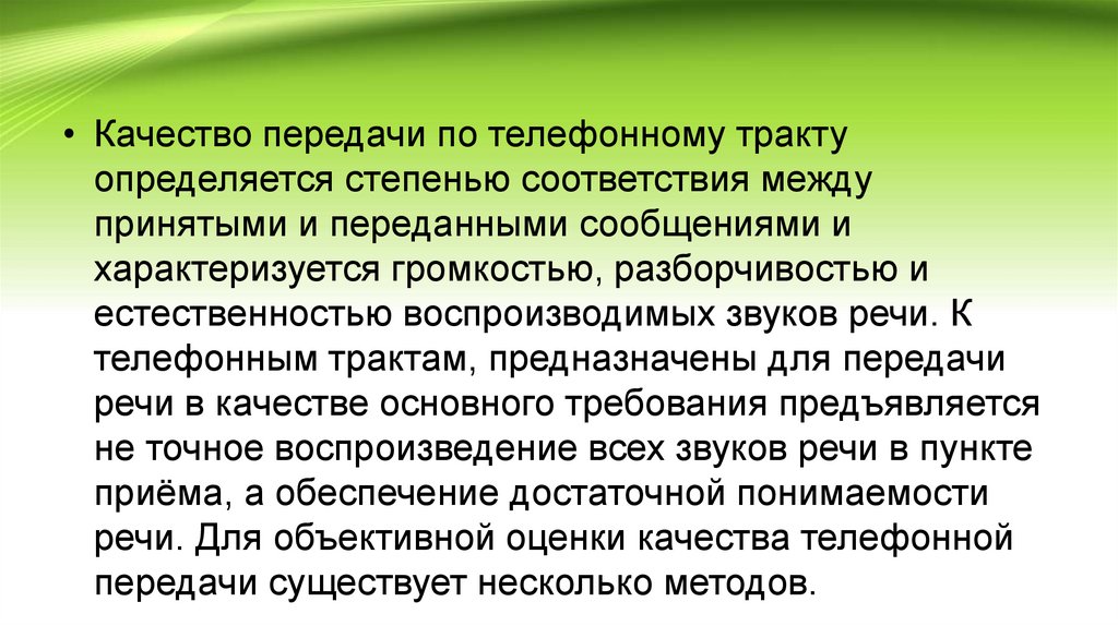 критерием качества телефонной передачи.