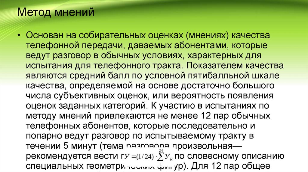 Методы мнений, артикуляции, эквивалентов определения качества телефонной передачи.
