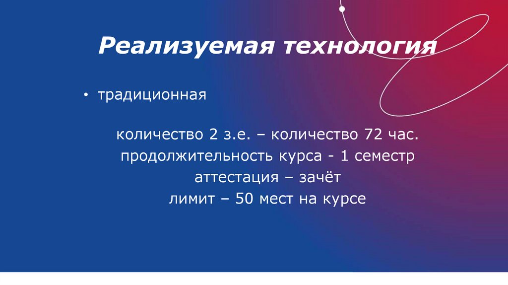 Реализуемая технология• традиционная