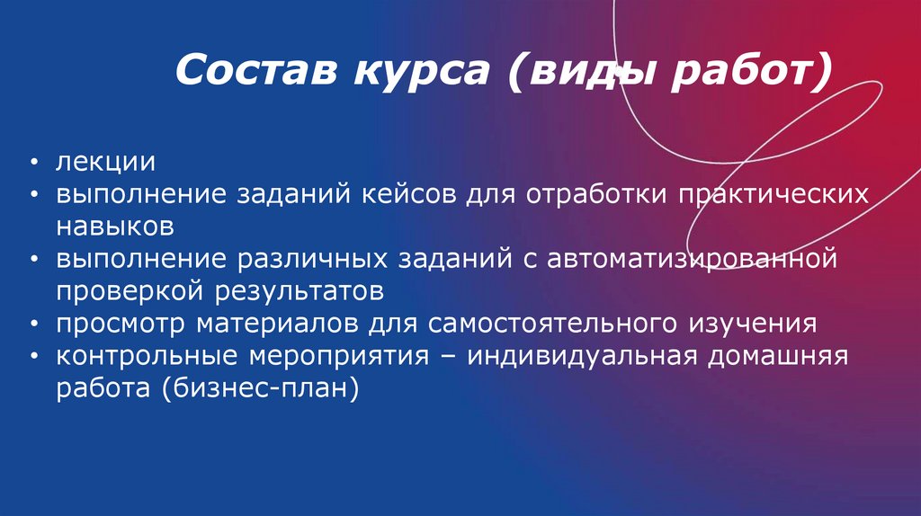 Состав курса (виды работ)• лекции
