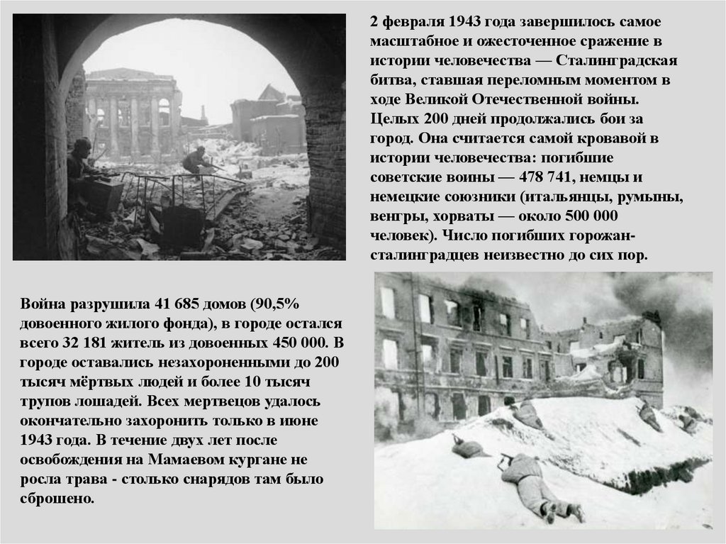 человек). Число погибших горожансталинградцев неизвестно до сих пор.