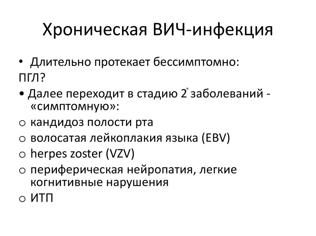 Хроническая ВИЧ-инфекция• Длительно протекает бессимптомно: