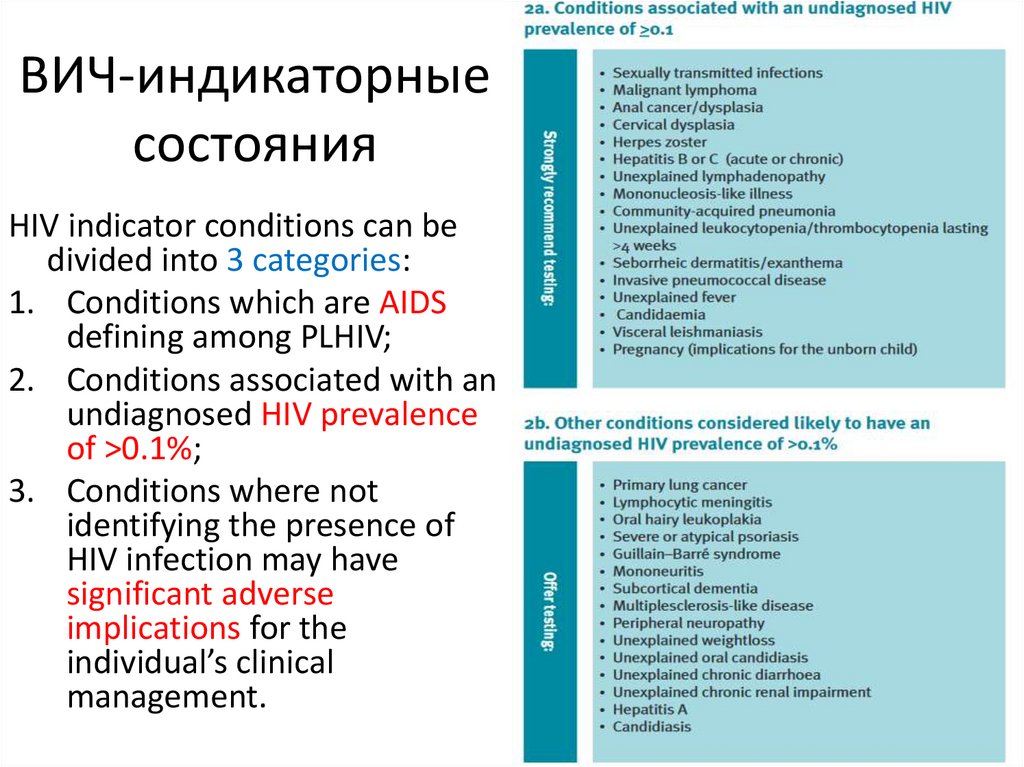 ВИЧ-индикаторные состояния –связаны с повышенной вероятностью выявления ВИЧ =