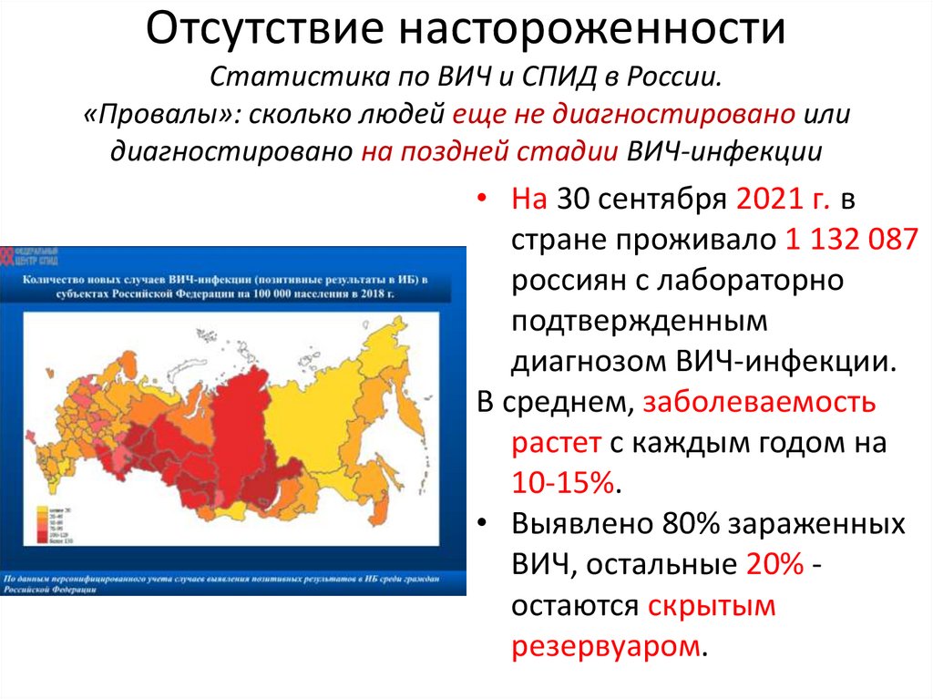 Отсутствие настороженностиСтатистика по ВИЧ и СПИД в России.