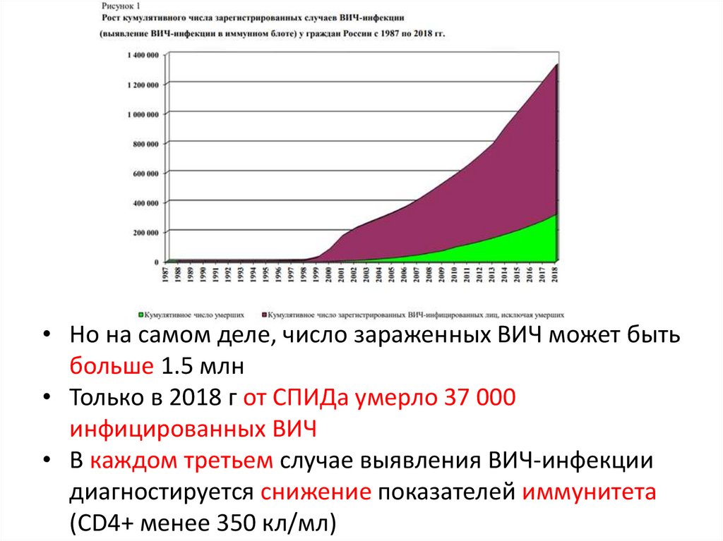 • Но на самом деле, число зараженных ВИЧ может бытьбольше 1.5 млн
