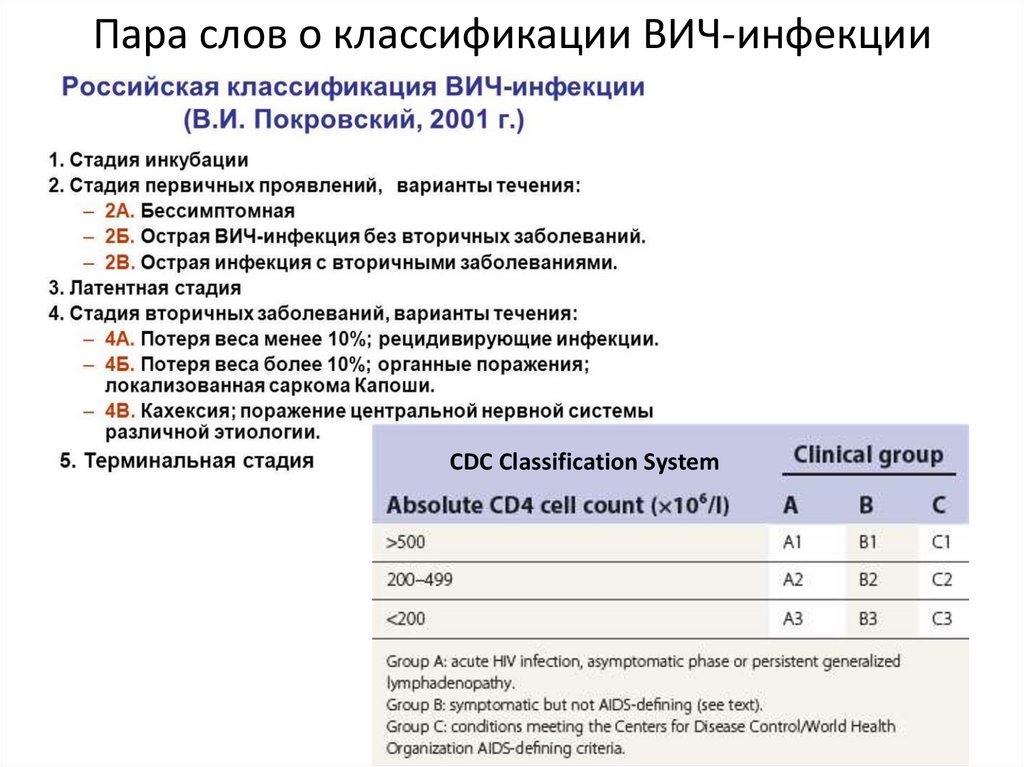 Пара слов о классификации ВИЧ-инфекцииCDC Classification System