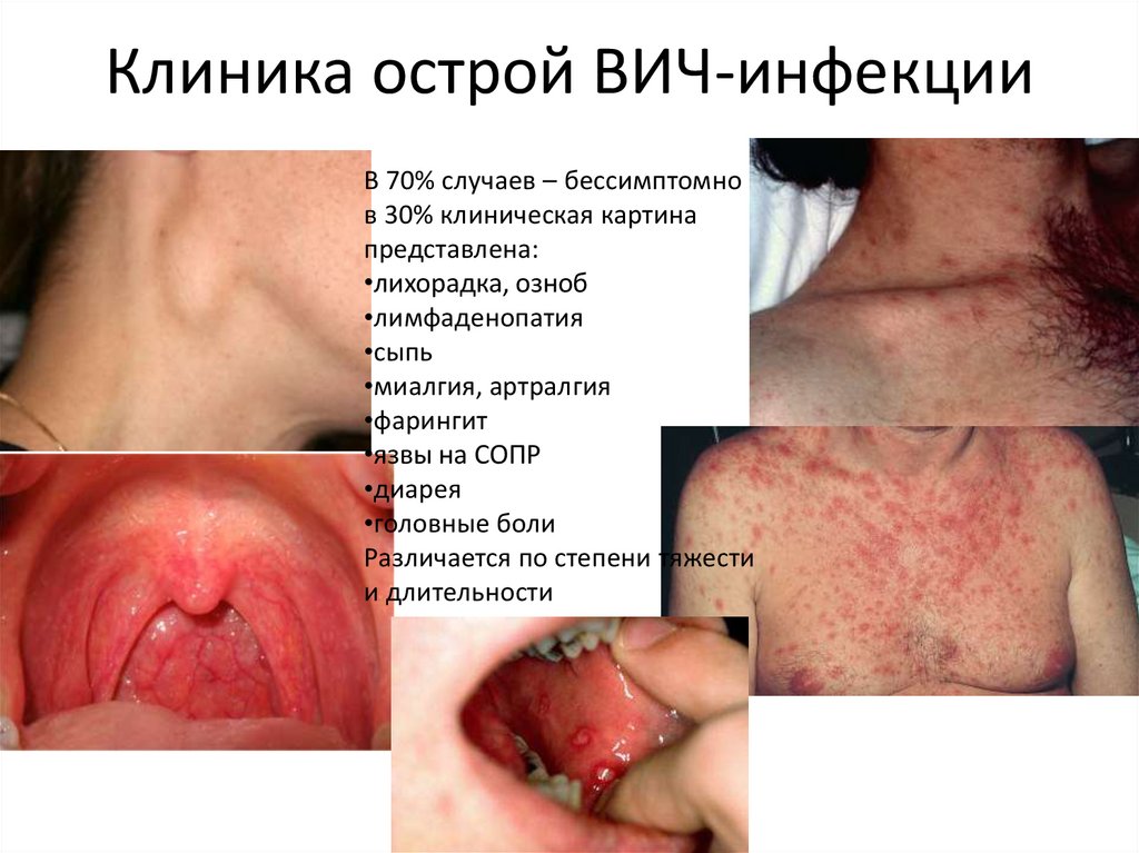 Клиника острой ВИЧ-инфекцииВ 70% случаев – бессимптомно